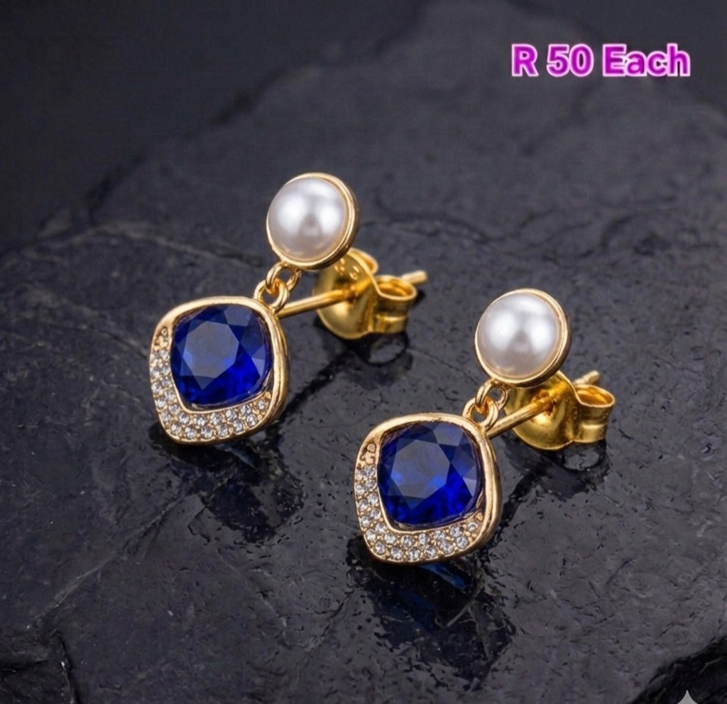 Pearl blue stone dangle earings
